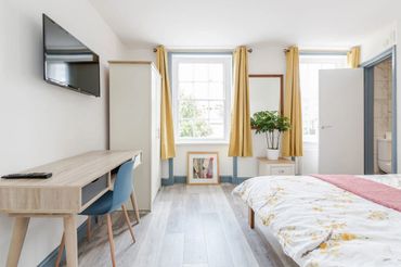 We went back to brick, added internal insulation, suspended the ceiling to help reduce sound, added 5 internal ensuite bathrooms and removed and reinforced the chimney stack. In doing so, we created a luxury 5 bed HMO all ensuite with a separate kitchen and living room.